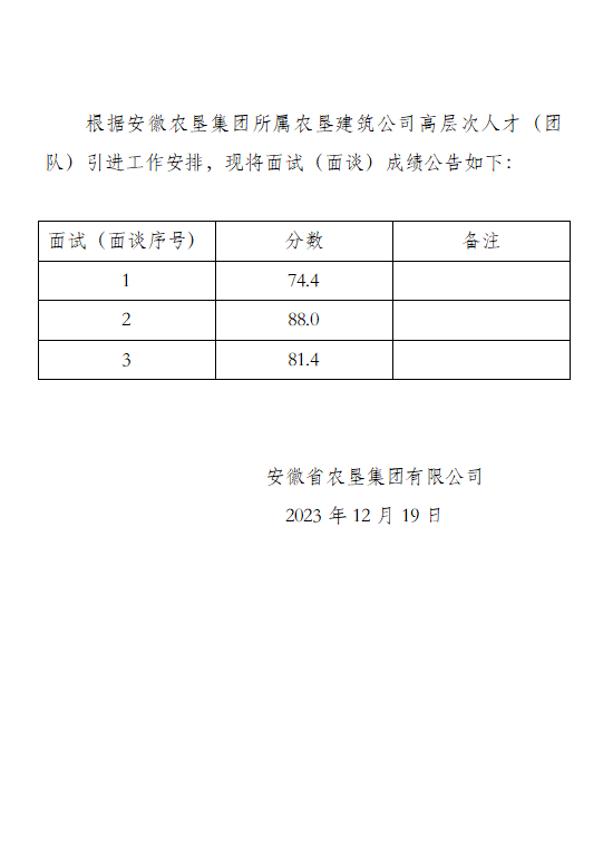 开云手机登录入口集团所属农垦建筑公司高层次人才引进面试(面谈)成绩公告