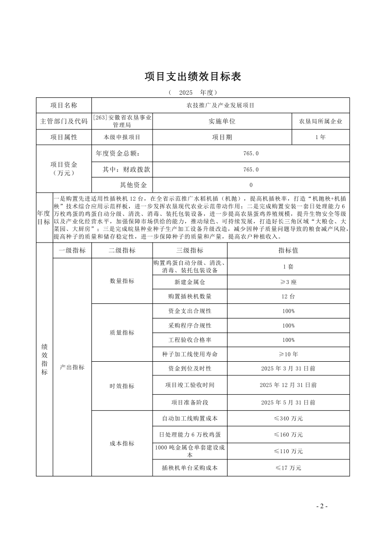 开云手机登录入口:安徽省农垦事业管理局2025年度项目支出绩效目标.pdf
