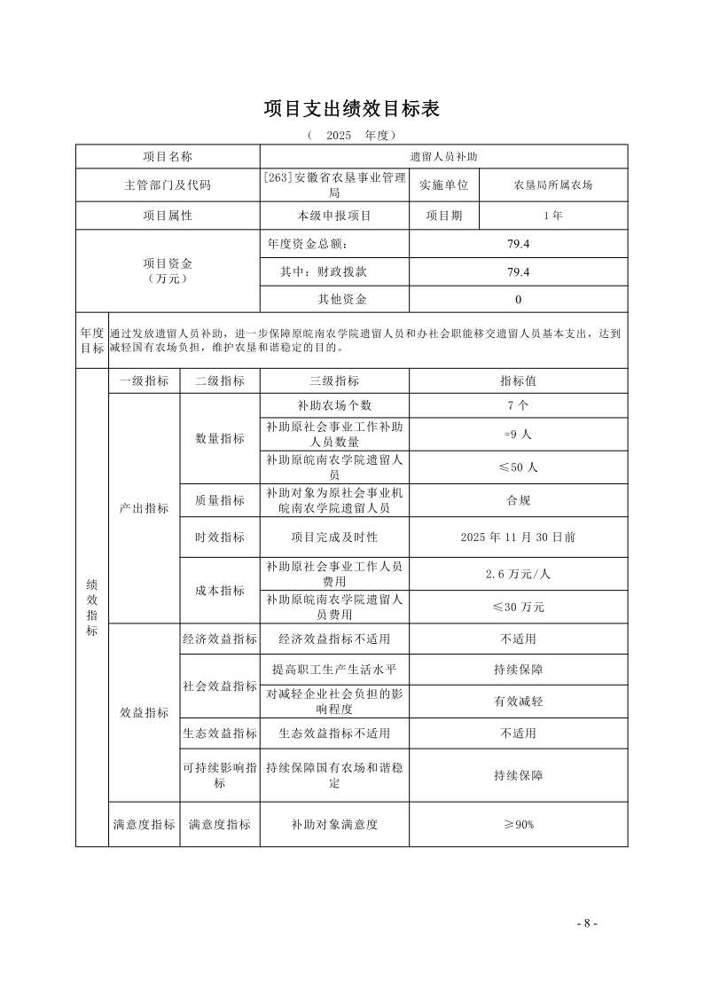 安徽省农垦事业管理局2025年度项目支出绩效目标