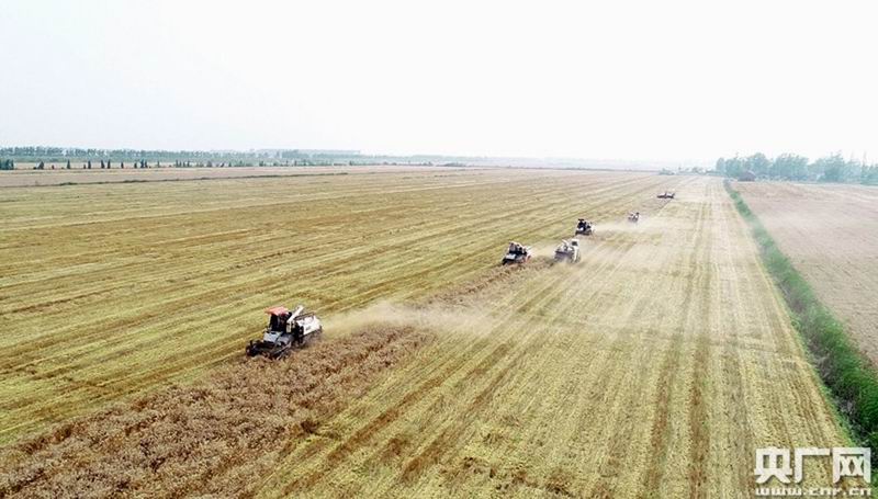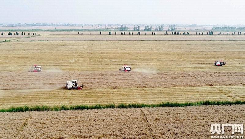 央广网合肥5月28日消息:麦收在即,安徽省农垦种植的34万亩小麦迎来了又一个丰收之年。其中沿江江南非主产区农场种植的10万亩小麦目前已收割完毕,沿淮农场也即将开镰。图为沿江垦区华阳河、皖河农场麦收现场。(李龙 徐丽燕摄)