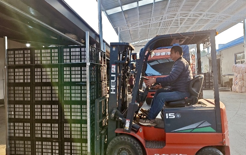 公司职工正在装货。(袁雨婷 摄)