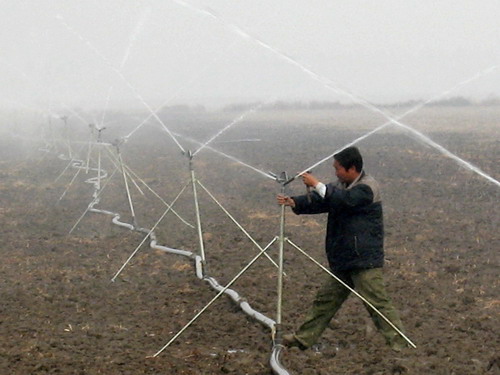 马厂湖农场地处江淮分水岭上,少雨缺水一直是制约农场发展的瓶颈,过去遇旱抢水,抗旱时节经常和周围村民发生矛盾。实施国家农业综合开发项目后,农场利用项目资金购置了42台套节水喷灌设备,同时分区域在全场耕地上先后开挖了14个蓄水塘,修建涵闸5座,桥梁4座,开挖疏浚沟渠1700米,打机井450眼,地下给水管道纵横密布,形成管道网络,彻底解决了缺水问题。