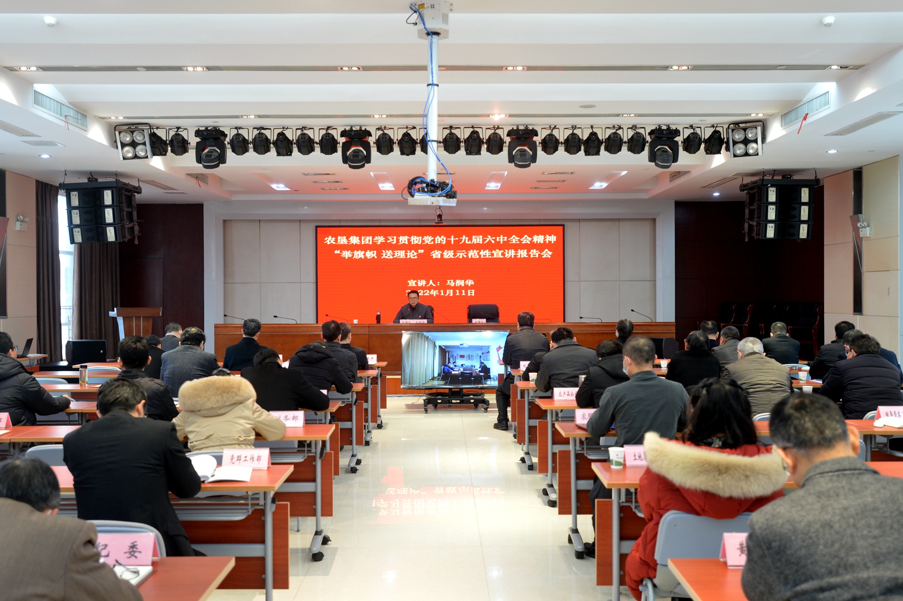 为深入学习贯彻党的十九届六中全会精神,按照省委统一部署,1月11日下午,省委宣讲团成员、省国资委党建工作处处长马润华到农垦集团作“举旗帜·送理论”宣讲报告。集团公司领导,各部室负责人,在肥企业领导班子成员在主会场参会,各二级企业领导班子成员及中层管理人员在分会场参会。党委副书记王良贵主持报告会。