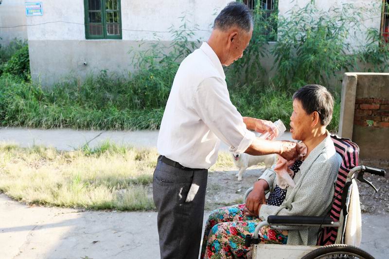 李成龙是华阳河三场华港新村社区居民,5年前,妻子张菊兰突然中风倒下,寒来暑往,1800多个日日夜夜,他每天给妻子梳头擦脸、喂水喂饭、按摩身体,每逢好天气就推着瘫痪的妻子散步,精心照顾生活起居,相濡以沫,不离不弃,用爱与坚持演绎了一段感人至深的家庭故事,用行动诠释了执子之手、与子偕老的承诺。他的事迹经《安庆日报》等媒体报道后,赢得了良好的社会反响。()