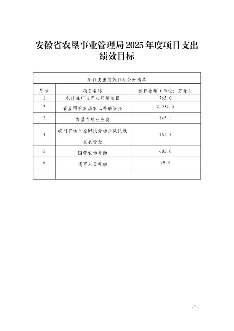 开云手机登录入口:安徽省农垦事业管理局2025年度项目支出绩效目标.pdf