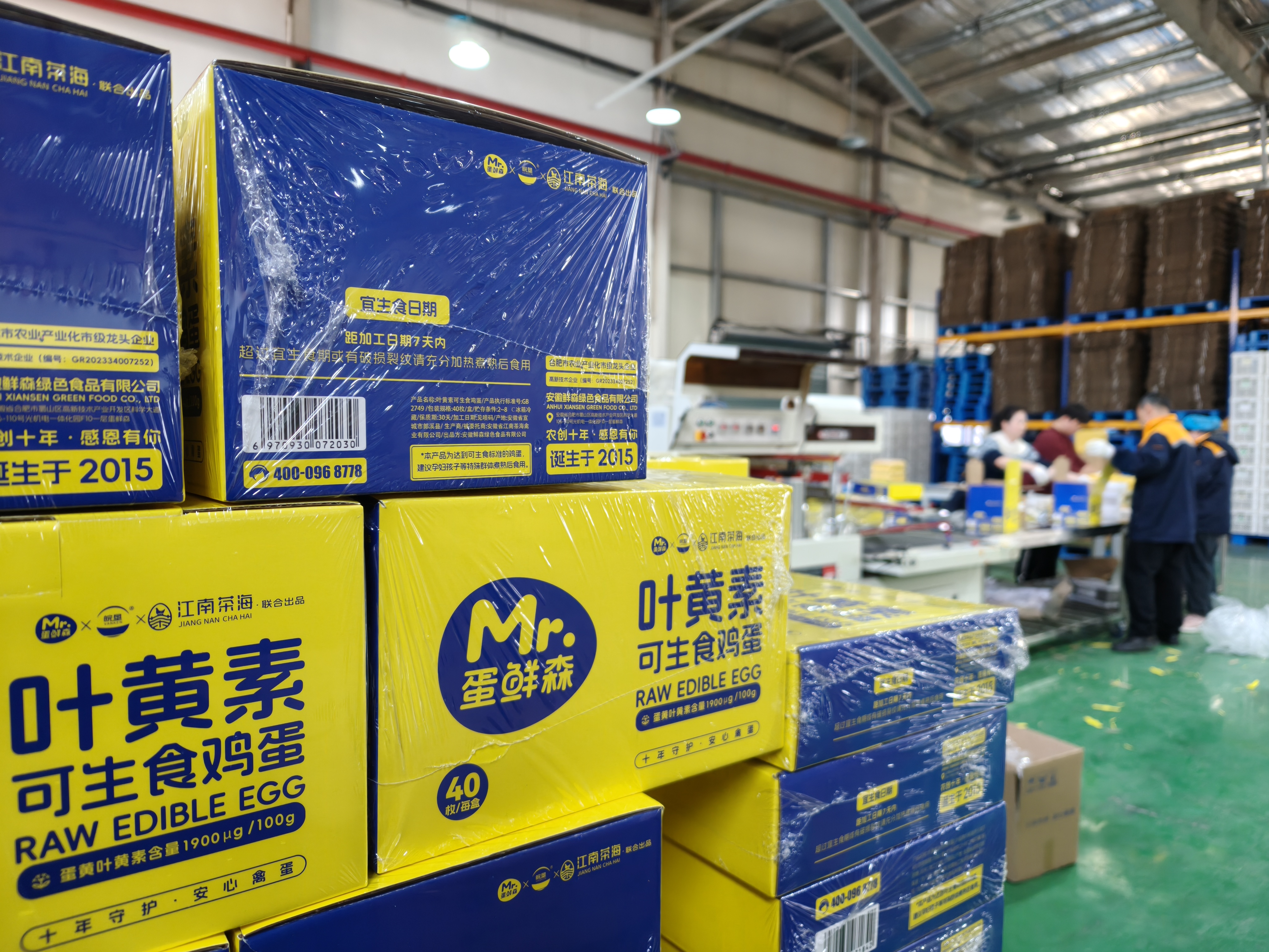 3月10日下午,江南茶海禽业公司仓库,当日生产的印有“皖垦”“蛋鲜森”“江南茶海”三方logo的鸡蛋由顺丰速运直发,次日上午就能到达客户手中。这种“一件代发”业务开启仅3天,就累计发货近500件,实现了江南茶海鸡蛋营销方式新的突破。