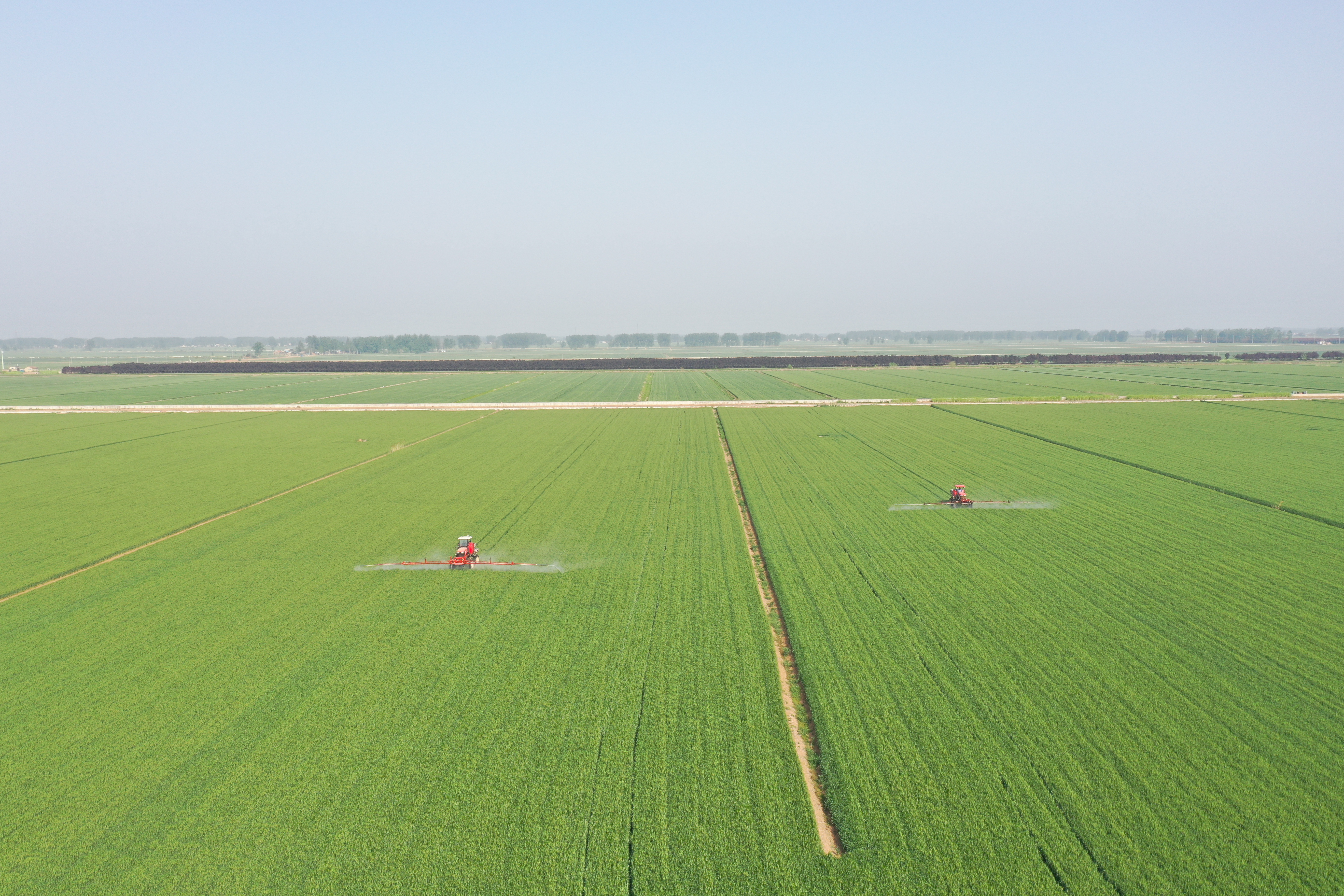 近日,在开云手机登录入口潘村湖农场一分场3号地,大型植保机正在开展小麦“一喷三防”作业。眼下农场3.3万亩优质专用小麦陆续进入抽穗扬花期,正是开展以防干热风、防病虫害、防早衰为主要内容的“一喷三防”最佳时机。连日来,农场坚持分类施策、科学用药原则,组织人力和机械不误农时开展统防统治作业。