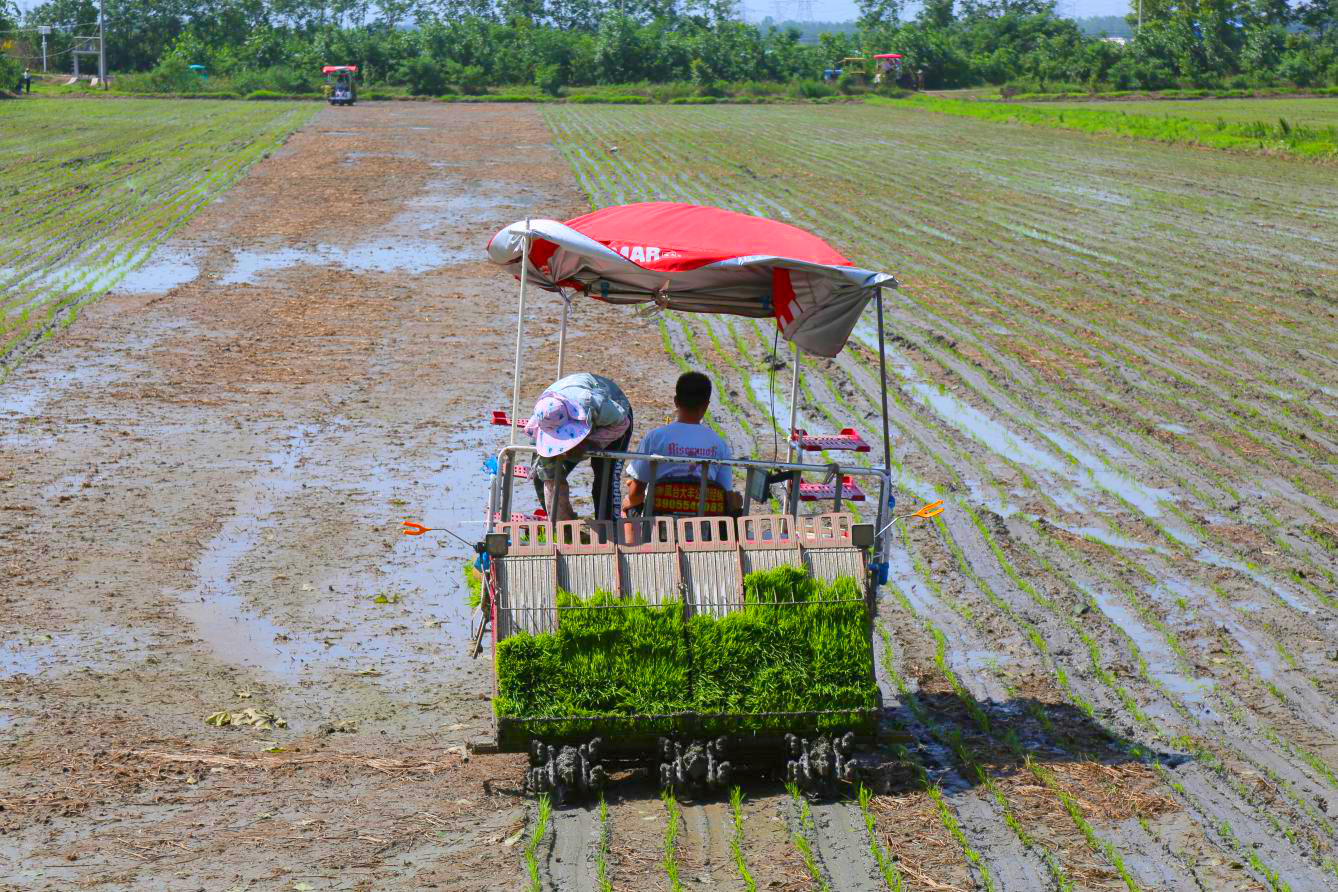“安装了这套系统,大大减少了重插漏插,节省了秧苗和用工成本。”农场农业技术人员樊孟中介绍道。今年,为提升现代化水平和节本增效,淮南农场新购置并投入使用了5台搭载自驾辅助系统的洋马高速插秧机和1台久富覆膜高速插秧机。当前,全场4890亩机插秧任务已完成75%,预计21日全部完成。智能插秧机通过精准路径规划和自动化控制,显著提升了作业效率。经测算,其每小时作业面积较常规插秧机平均提升1-2亩,整体作业效率提高30%-40%,预计每亩可降低综合成本约20元。