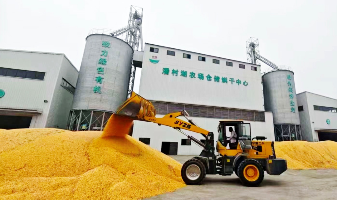 潘村湖农场粮食烘干中心。(杨登红 摄)