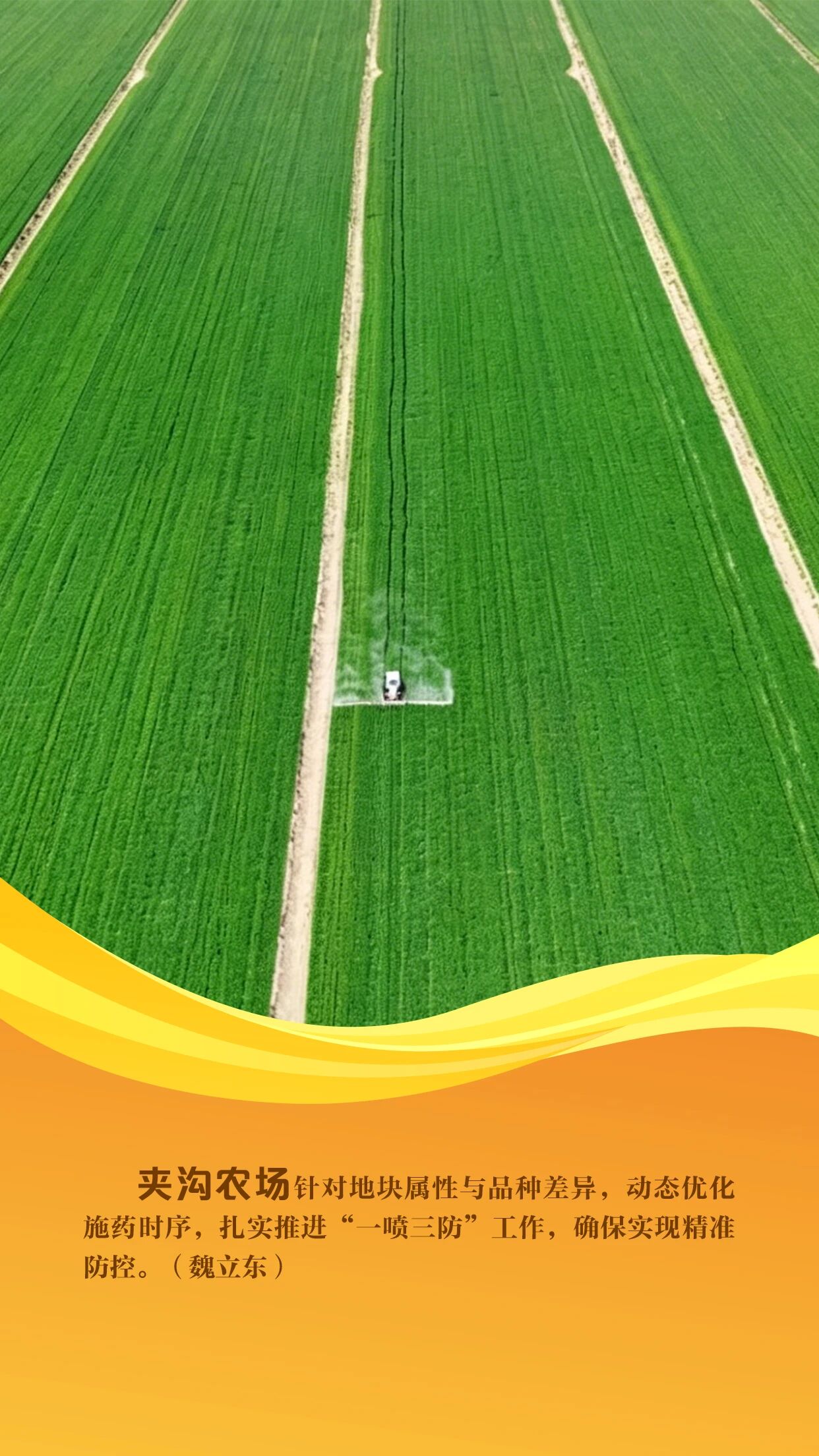 当前,沿淮地区小麦正处于抽穗扬花期,是夏粮产量形成的关键期,也是赤霉病防控的“窗口期”。农垦集团紧扣农时,组织各农场聚焦赤霉病精准防控,全面开展小麦“一喷三防”统防统治工作。各农场利用自走式喷竿喷雾机、无人机等高效植保机械,坚持因地因时制宜、分类管理,开展精准作业、科学施药,全方位筑牢夏粮丰收根基。
