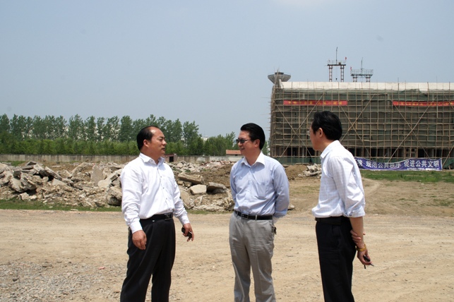座谈中,杨俊宇介绍了农场廉租房的建设选址、规划设计、工程招投标、质量监管、施工进度以及今后的施工计划等方面情况,并陪同蔡永一行深入二期廉租房建设现场,查看了施工进度和工程质量。