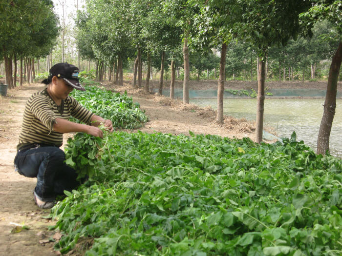 陈庆文在标准化养殖的基础上添加了“循环养殖”模式。养猪场场地选在鱼塘边上,用猪粪喂鱼、种菜,用菜叶边角料喂猪,形成养殖小循环。作为农场养猪协会的会长,陈庆文打算以他的标准化养殖小区为龙头,带动农场和周边县乡也发展标准化养猪模式。