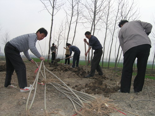 眼下正是植树造林时节。连日来,潘村湖农场掀起了植树造林热潮,广大家庭农场职工将“四旁地”充分利用起来,栽种各类树木,既绿化了家园,又播下了收获的希望。图为3月12日“植树节”这天,该场一分场职工正在沟渠旁栽种树木的情景。(杨登宏摄)