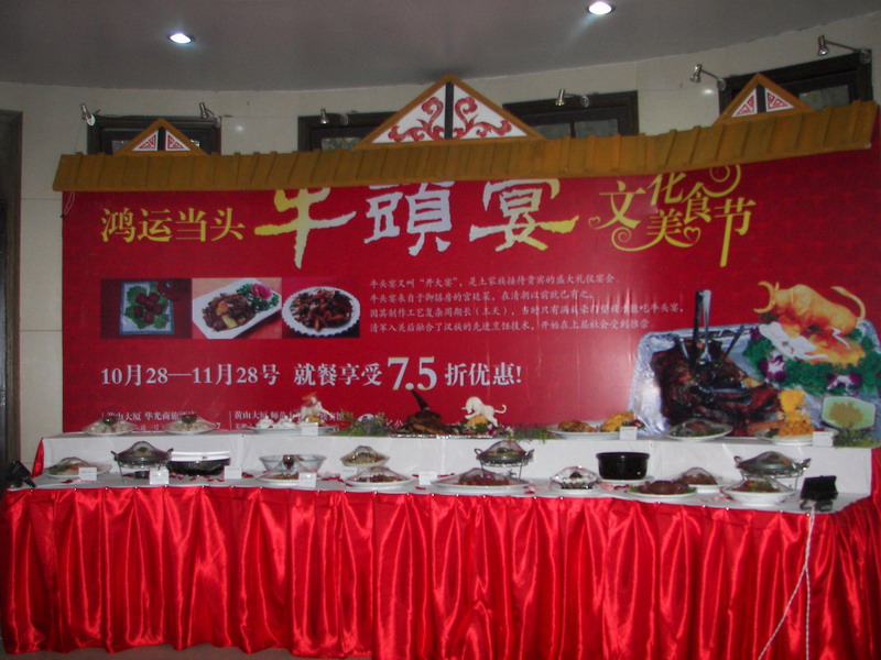 10月28日,开云手机登录入口黄山大厦KK公司第二届文化美食节活动——“2009鸿运当头牛头宴” 在黄山大厦华光商旅酒店和黄山大厦安徽师范大学专家楼宾馆两地隆重开幕。 本届美食节为期一个月,由牛头宴、蟹宴、鱼羊鲜三大系列活动组成。活动期间,还会向消费者推出特色手抓牛头、鱼羊鲜、金丝带鱼卷和干锅萝卜丝圆等具有土家族特色的美食。